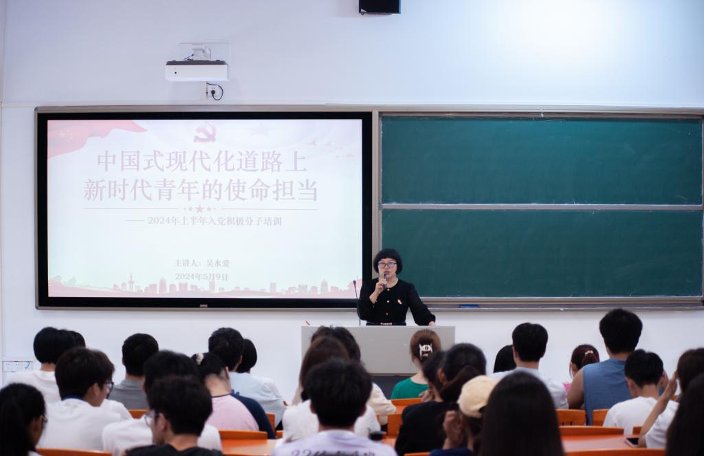 为深入学习贯彻习近平新时代中国特色社会主义思想,切实提高入党积极分子的理论水平,增强其党性素养,5月9日中午,伟德国际1946bv官网吴水爱书记为河源校区2024年春季学期入党积极分子讲授专题党课,河源校区部分公司的入党积极分子约130人参加。