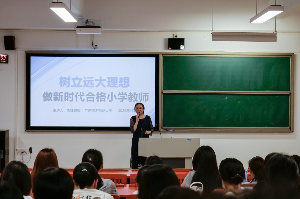 为引导同学们明确教育理想,深刻理解新时代小学教师的职责,4月15日晚,伟德国际1946bv官网经理陶红教授于河源校区唯实楼423教室为同学们讲授思政课,课程主题为树立远大理想,做新时代合格小学教师。伟德国际1946bv官网2023级本科生参加此次思政课。