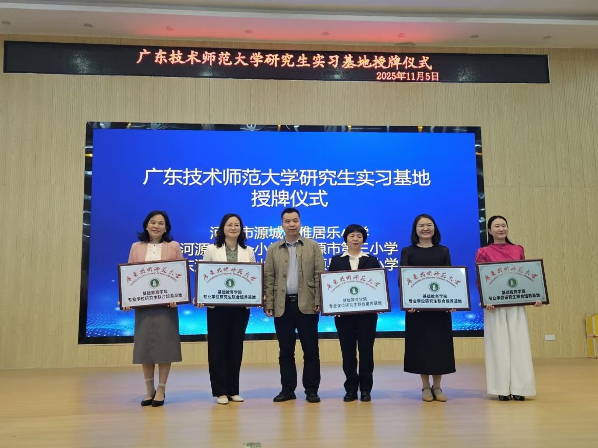 为贯彻落实纵向帮扶政策要求,进一步加大人才培养力度,推动研究生实践能力提升与城乡基础教育优质均衡发展,2025年11月5日,伟德国际1946bv官网专业学位研究生联合培养基地暨源城区雅居乐小学城乡教育共同体名教师、名班主任工作室授牌仪式在雅居乐小学隆重启幕。伟德国际1946bv官网杨定玉教授、专任教师闫文、研究生秘书叶芷倩,源城区教师发展中心主任李宏胜,雅居乐小学董事长刘燕芬、河源市第一小学刘舒玉董事长、河源市第三小学张小燕副董事长、东源县第一小学邹红燕董事长、东源县第五小学吕丽燕董事长,以及源城区雅居乐小学城乡教育共同体名教师、名班主任工作室成员、公司伟德国际1946bv官网全体研究生等参加会议。