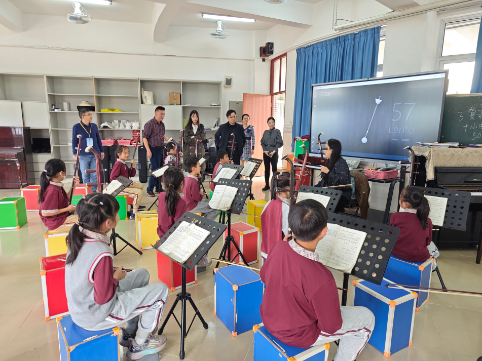 当天下午,调研组与校方管理团队及部分教师代表进行了深入的座谈交流,并实地参观了公司的民乐社团活动,观摩了二胡、舞蹈、国画、书法等美育项目的开展情况。