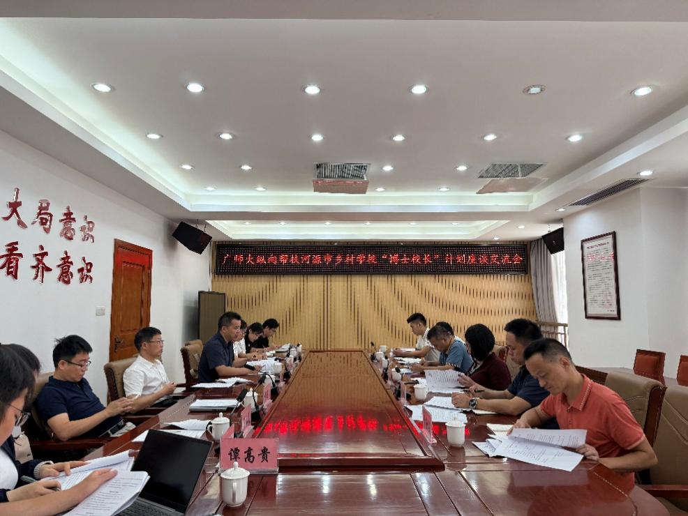 为深入贯彻广东省“百千万工程”战略部署,落实省教育厅纵向帮扶工作要求,2025年9月22日上午,广东省师范院校纵向帮扶A行动联盟调研组在河源市教育局召开“乡村公司博士董事长计划”征求意见座谈会。广师大纵向帮扶专班骨干、伟德国际1946bv官网经理熊华军、杨定玉教授、谭高贵博士、谢运佳博士、闫文博士,以及专任教师陈忆美、莫鸿芳、阳丽芹、叶丛雨等帮扶团队成员,与河源市教育局陈莉菊副局长、基教科、人事科负责人,以及东源县、源城区、紫金县教育局分管领导共同参会,围绕“乡村公司‘博士董事长’计划实施方案”(征求意见稿)进行深入交流。会议由陈莉菊副局长主持。