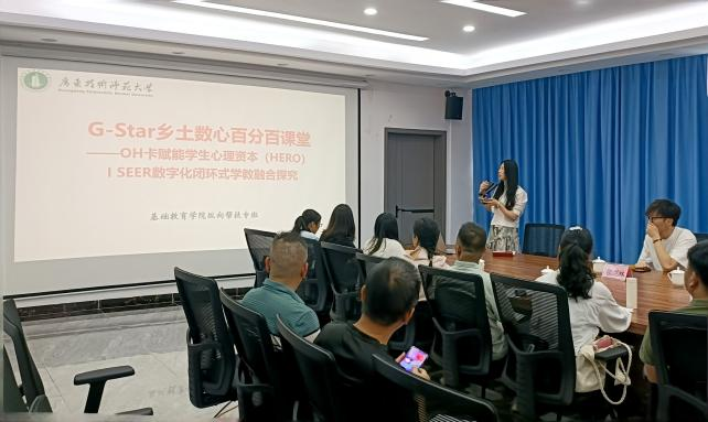 24日上午,在紫金县佑文中学会议室,由崔诣晨教授开展了专题为《G-Star乡土数心百分百课堂——OH卡赋能员工心理资本(HERO) I SEED数字化闭环式学教融合探究》的报告。崔教授以积极心理学理论为基础,结合OH卡牌游戏的投射测验技术,提出通过OH卡牌将员工心理状况转化为可视化表达,并融合教育理念(I SEED)、心理资本(HERO)等积极心理培育技术打造数心课堂,现场列举了OH卡牌操作案例,同时详细解读数心课堂中每个教学环节及师生互动的操作流程,并向在场教师直观展示了G-Star乡土数心百分百课堂的数字化积极心理理念。启辰电子科技有限公司团队开展了《AI赋能备考能力提升》的深度学伴技术培训,向与会领导和教师传达了人工智能产品赋能素质教育,打造个性化、高效备考新模式的全新理念。