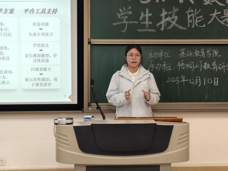 汇报中,有的队伍通过数据可视化清晰呈现高频失分点,有的提出“错题复盘+同类题强化”的闭环方案,逻辑清晰、重点突出,充分展现了八支队伍良好的专业素养、技术应用能力和团队协作精神。现场思维碰撞激烈,解决方案切实可行,彰显了新时代师范生扎实的综合实践能力。