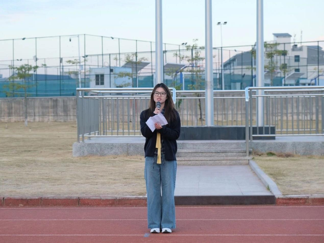 升旗仪式结束后,员工代表依次上台分享感悟。24级员工代表姚沛希与25级员工代表欧阳淑怡演讲诵读时深情阐述:“爱国从不是空洞的口号,而是刻进血脉的信仰,是从屈原‘九死不悔’到戍边战士‘清澈的爱’的精神传承。”她们表示,新时代青年学子应当将爱国情怀落实到具体行动中——在课堂上专注听讲,在实验室严谨求证,在校园里热心互助,用这些扎实的日常行动践行青年担当。