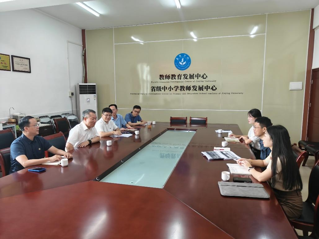 为深入贯彻落实《广东省师范(教师教育)院校纵向帮扶欠发达地区“三所公司”和县中质量提升工作方案(2024-2027年)》精神,推动教育均衡发展,2025年8月15日,广东省师范院校纵向帮扶A行动联盟调研组赴梅州市开展“三所公司”纵向帮扶专项调研。本次调研旨在全面了解梅州市落实纵向帮扶工作的进展情况,聚焦帮扶机制建立、项目实施成效及困难,探索深化合作路径。调研组由bevictor1946韦德官网达之讲座教授罗海鸥、伟德国际1946bv官网教授兼纵向帮扶专班秘书长熊华军带队,专任教师陈忆美、阳丽芹等参加调研活动。梅州市教育局副局长罗涤权、基础教育科科长蓝建涛等陪同调研。