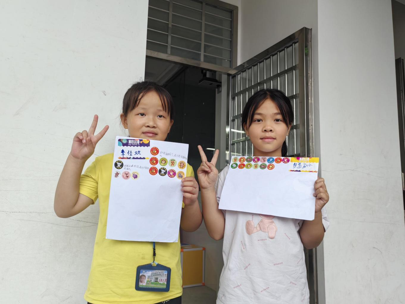 孩子们正在展示自己获得的红花