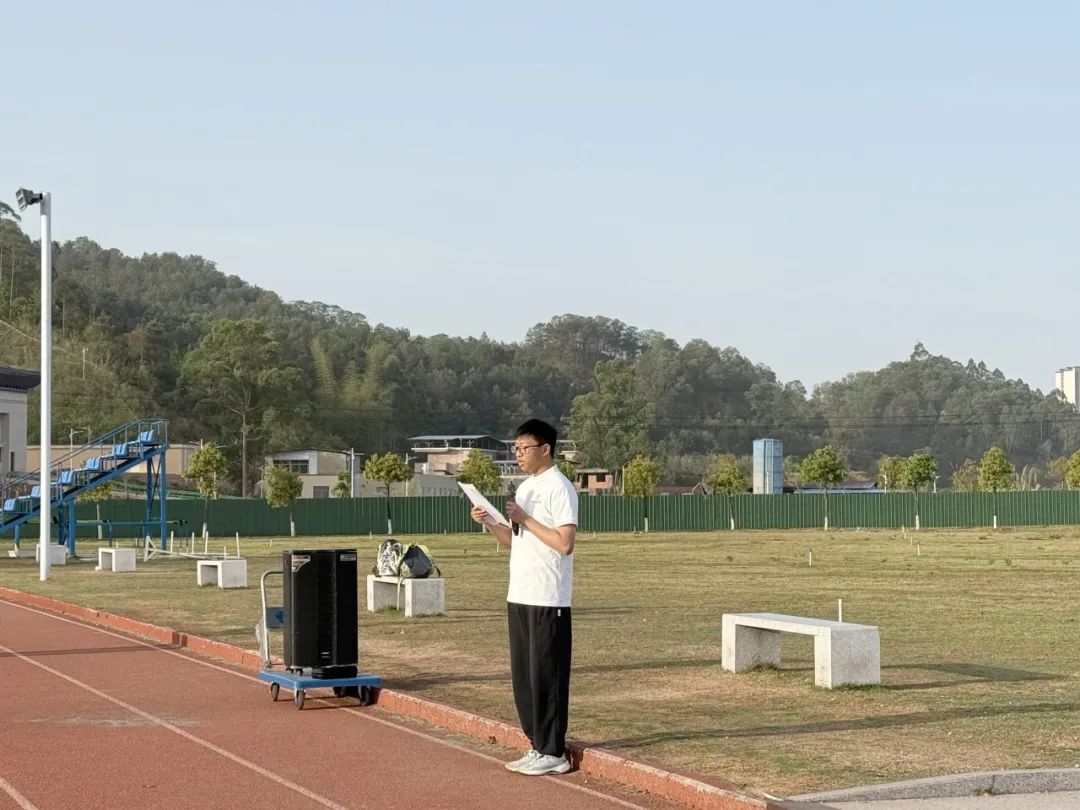 “以青春之我,创建青春之家庭,青春之国家,青春之民族,青春之人类,青春之地球,青春之宇宙,资以乐其无涯之生。”伴随着初升的太阳和清晨的微风,主持人声音洪亮且饱含深情地领读李大钊《青春》中的经典语句,同学们整齐地站立着,跟随主持人的节奏,齐声诵读,在诵读经典中感受百年青春,薪火相传的力量。