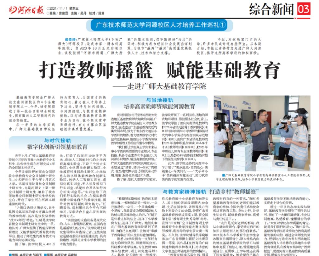 2024年11月,公司获得河源主流媒体《河源日报》深度报道,知名度、美誉度、影响力进一步提升。