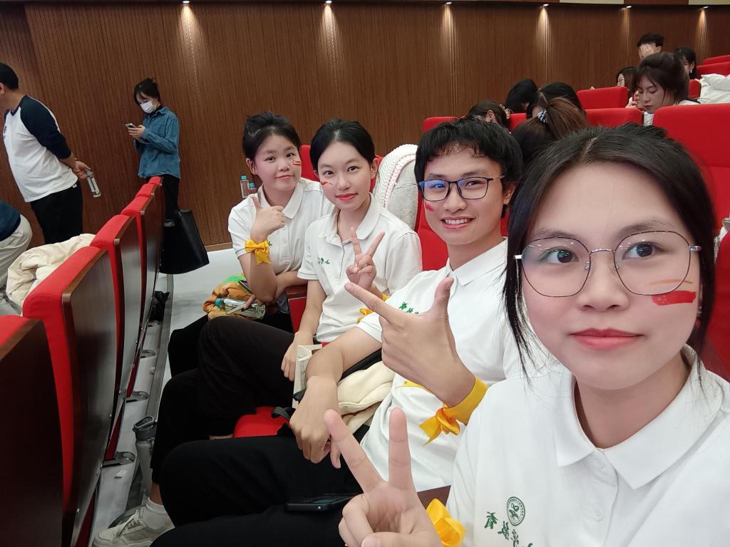 参加“传承红色精神,讲好五个故事”红色故事宣讲比赛的同学在台下合影留念