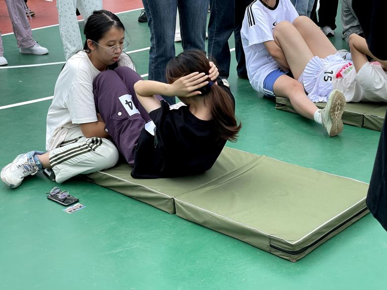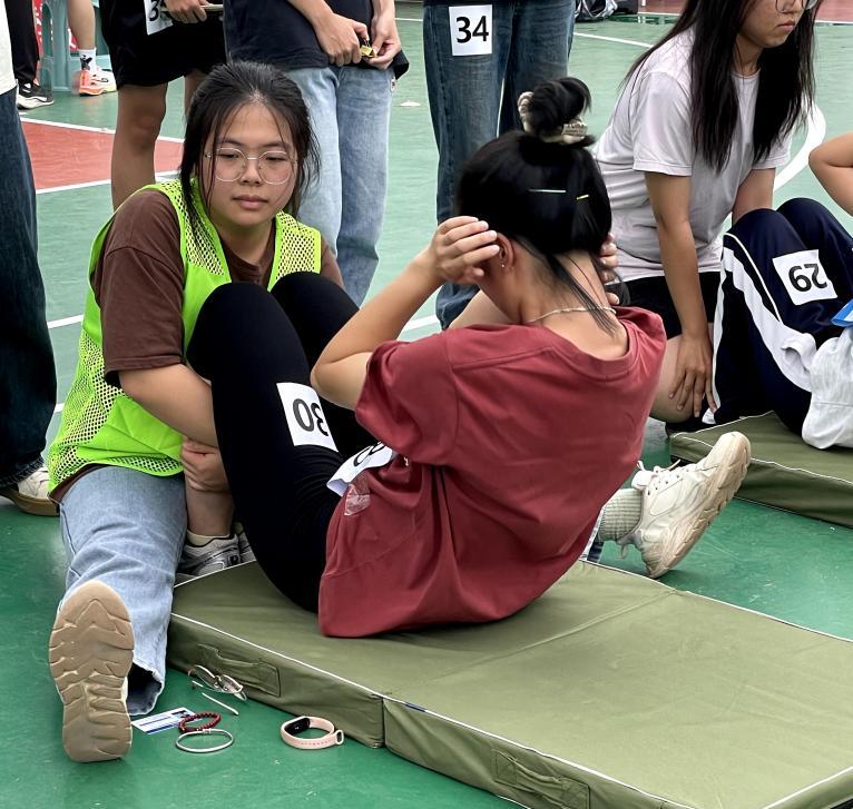 吴佳涵做仰卧起坐 袁佳仪/摄