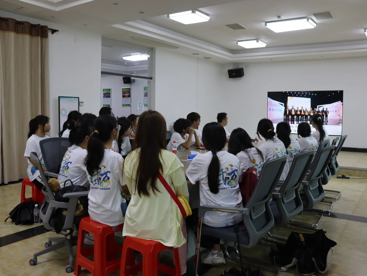 调研伊始,成员们观看了“糖巢”创客社区的宣传片,对基地的整体情况、入驻项目及运营模式有了初步了解。