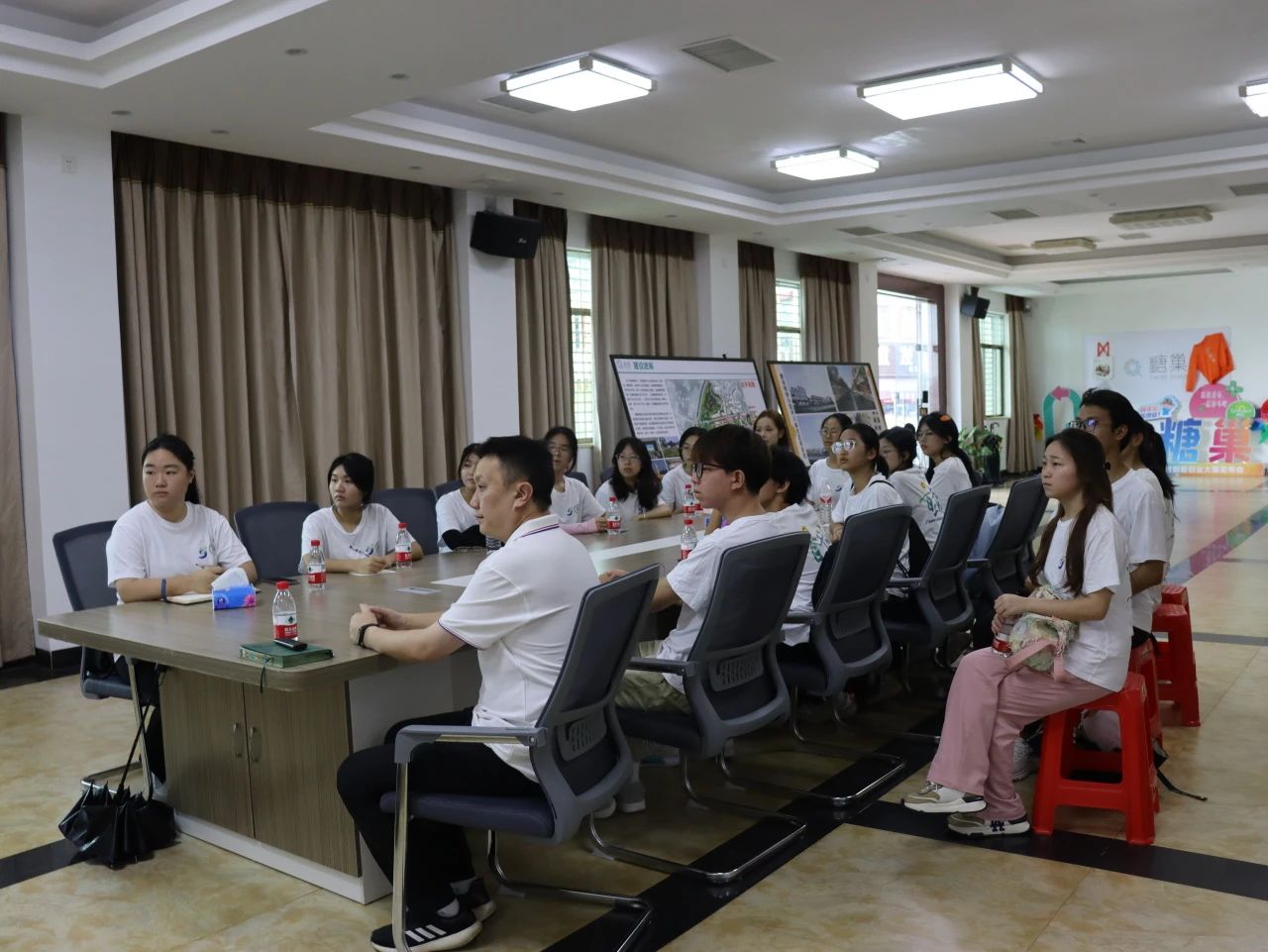 工作人员李盈向实践队详细介绍了“糖巢”创业项目的建设进展。“这些品牌商致力于实现连接年轻人的创意与生意,从物质交易到精神层面的兴趣爱好交流,助推了创客社区的建设”,李盈谈到,“‘糖巢’创客社区将通过人才孵化平台、创新创业空间以及政策支持等举办各类创业大赛等,全面营造浓厚的创业氛围,致力于打造河源地区的乡村创客首选社区。”实践队成员们认真聆听,并就政策帮扶、创业方向、项目落地等内容与相关人员进行了深入交流。