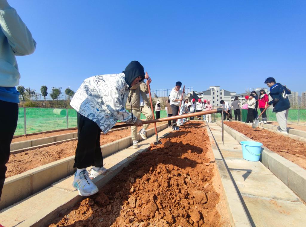 公司将课堂从校园教室搬到田间地头,公司邀请专业人员指导同学们开垦校园田地。同学们以饱满的热情和积极的态度,做好种植前期的各项准备,并齐心协力,经过松土、施肥、浇水、播种、覆膜等一系列步骤,完成了公司劳动教育田的初次种植。