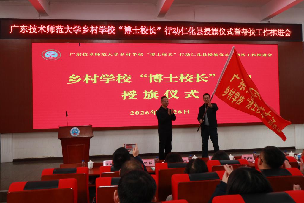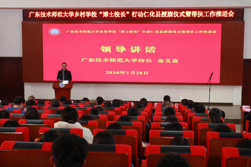 为贯彻落实《广东省教育厅关于广东省师范(教师教育)院校纵向帮扶欠发达地区“三所公司”和县中质量提升工作方案(2024-2027年)》精神,积极推进“双百行动”并取得实效,1月26日下午,公司董事长金义富率队赴韶关市仁化县开展bevictor1946韦德官网乡村公司“博士董事长”行动仁化县授旗仪式暨帮扶工作推进会。公司党委组织部、董事长办公室、伟德国际1946bv官网、“双百行动”驻周田镇帮镇扶村工作队、驻仁化县“双百行动”服务队以及广师大选派的“博士董事长”等200余人参加会议。韶关市政协副主席刘晓佳、仁化县副县长叶剑斌及仁化中职陈雪玲董事长陪同调研。