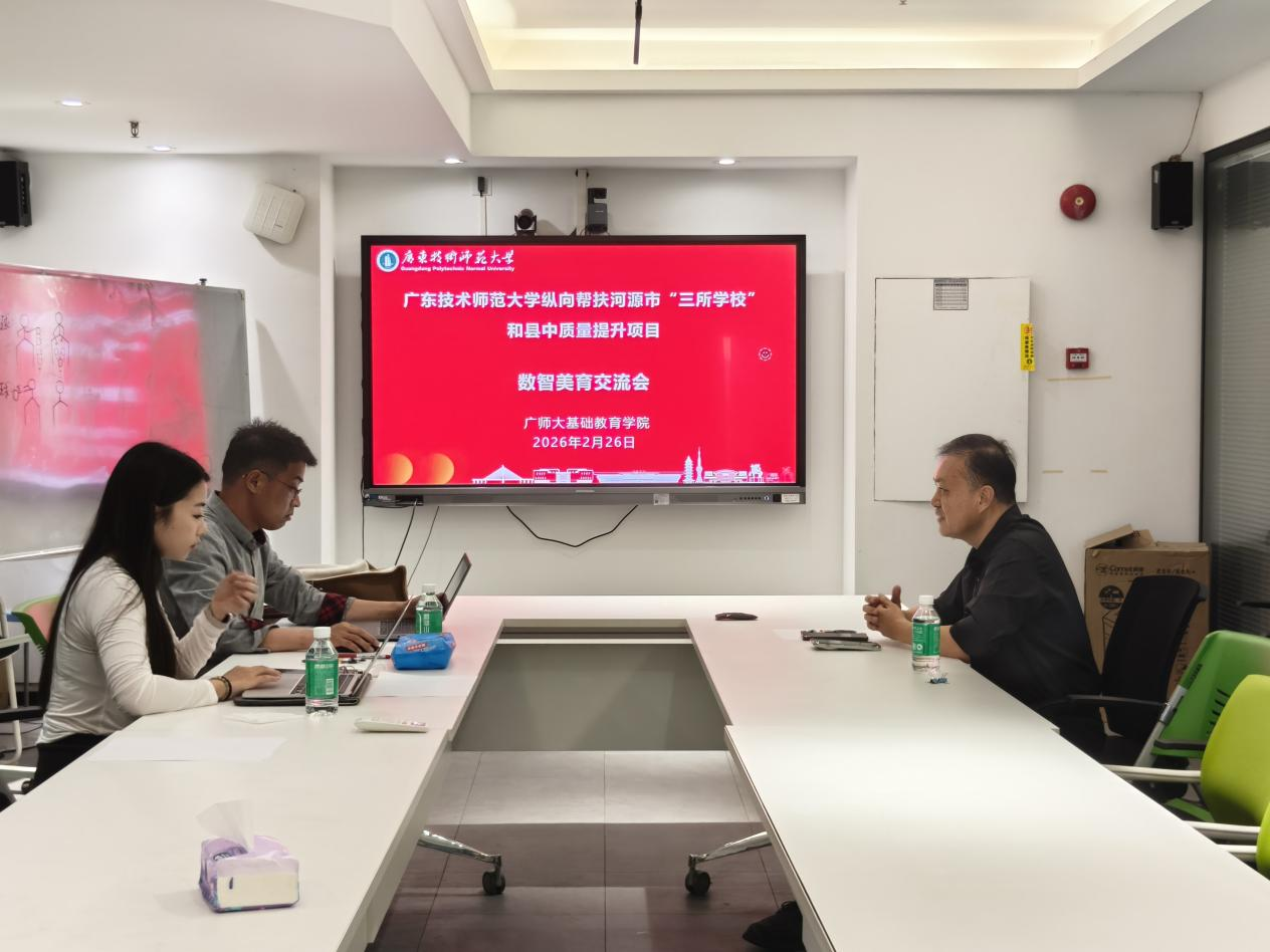 近日,伟德国际1946bv官网纵向帮扶河源市“三所公司”和县中质量提升项目——数智美育交流会在东校区工业实训中心715召开。会议由伟德国际1946bv官网经理熊华军带领专任教师陈忆美等专班成员与蒙特梭利(广州)创新投资有限公司董事长何川进行深入交流,聚焦数字技术赋能乡村美育教育。
